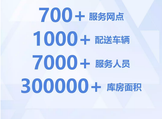 在全國(guó)23個(gè)省、4個(gè)直轄市、5個(gè)自治區(qū)建立了近700個(gè)服務(wù)網(wǎng)點(diǎn),全國(guó)庫房面積30多萬平方米,7000多服務(wù)人員,1000多配送車輛。