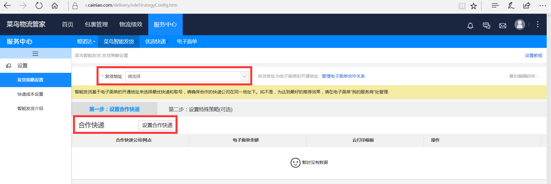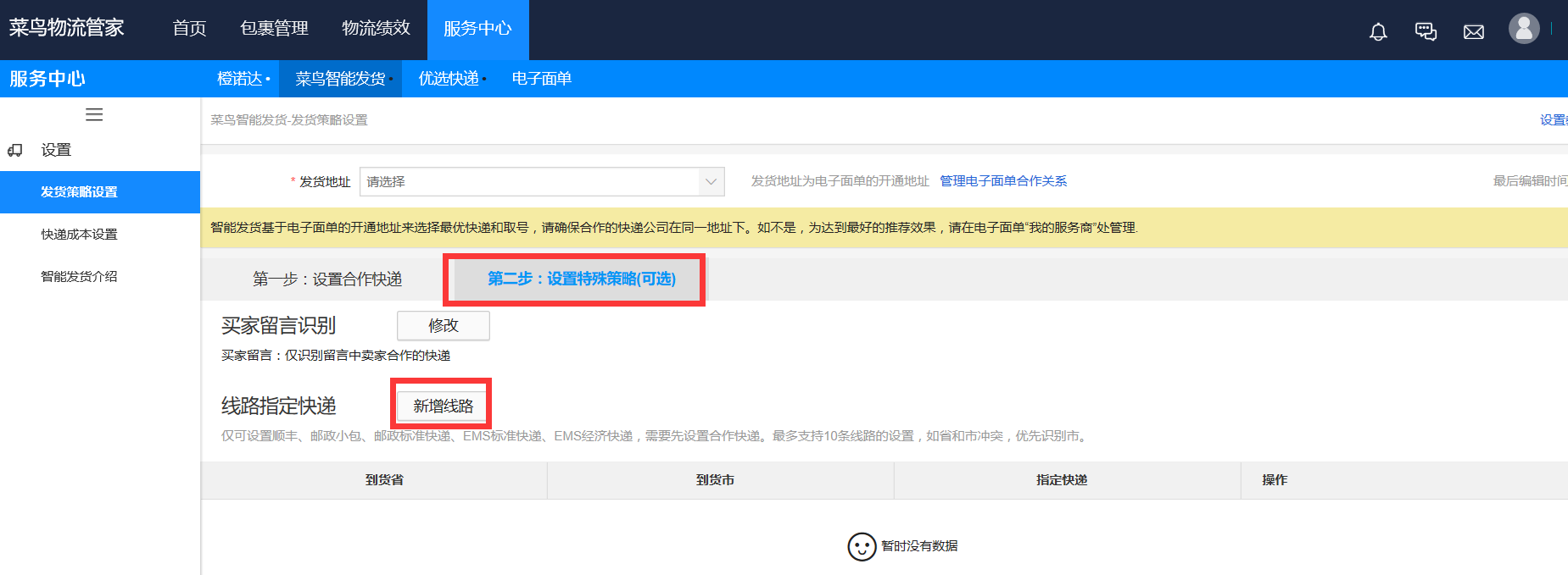 2、 配置菜鳥(niǎo)智能發(fā)貨策略: