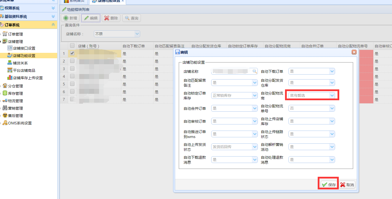 進(jìn)入訂單系統(tǒng)-店鋪管理-店鋪功能設(shè)置,選擇菜鳥(niǎo)智選保存,即可